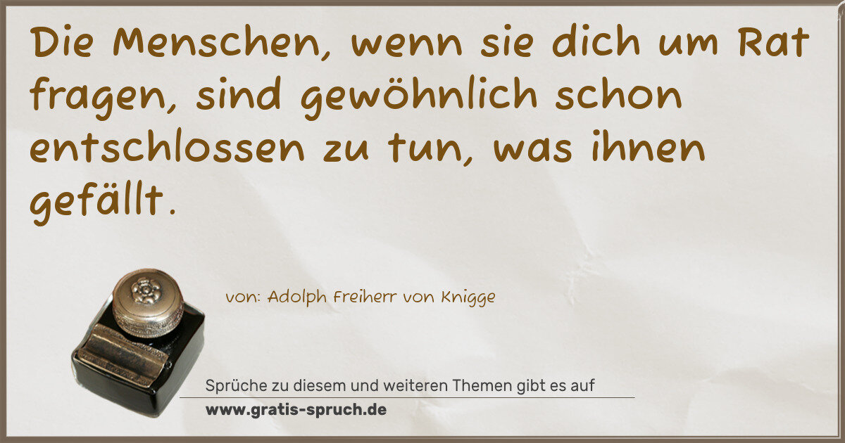 Die Menschen, wenn sie dich um Rat fragen, sind gewöhnlich schon entschlossen zu tun, was ihnen gefällt.