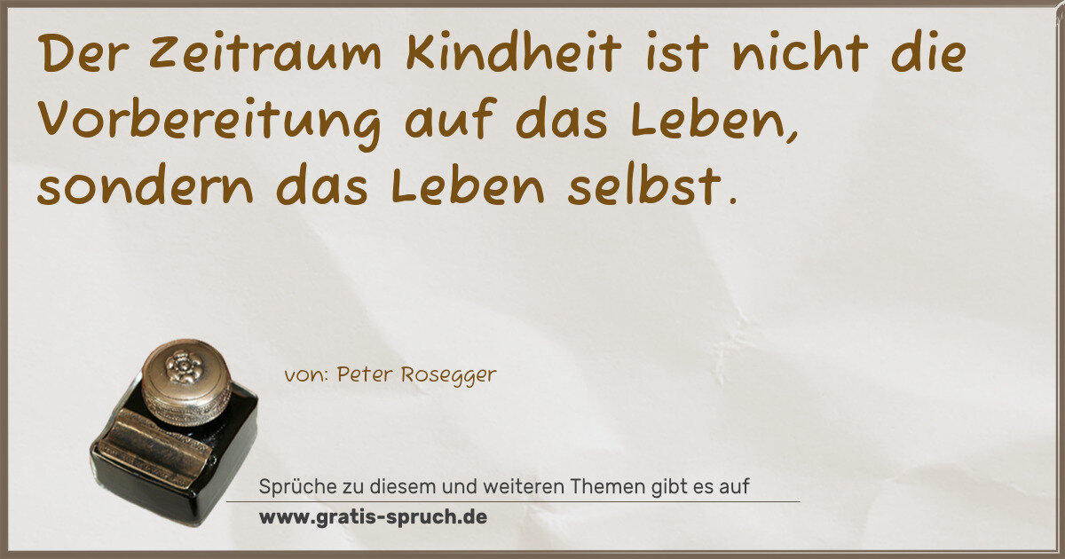 Der Zeitraum Kindheit ist nicht die Vorbereitung auf das Leben, sondern das Leben selbst.