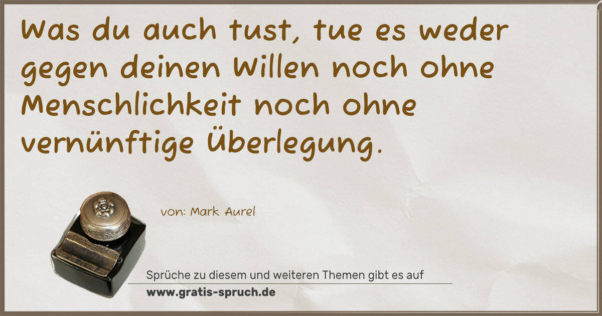 Was du auch tust, tue es weder gegen deinen Willen noch ohne Menschlichkeit noch ohne vernünftige Überlegung.