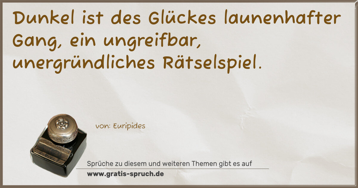 Dunkel ist des Glückes launenhafter Gang, ein ungreifbar, unergründliches Rätselspiel.