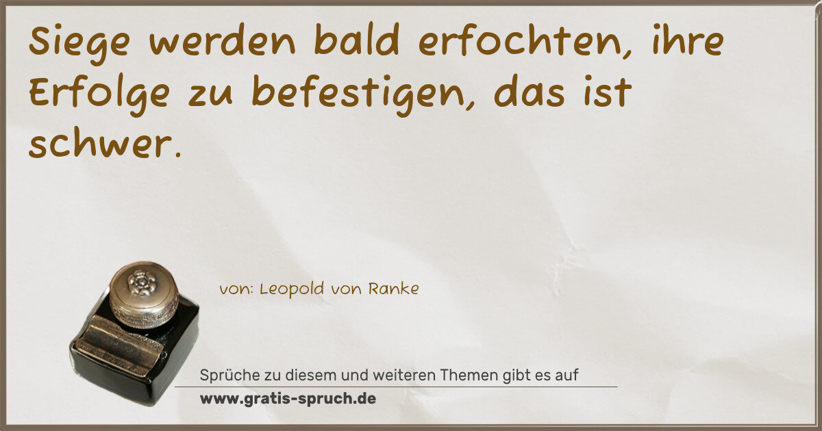 Siege werden bald erfochten, ihre Erfolge zu befestigen, das ist schwer.
