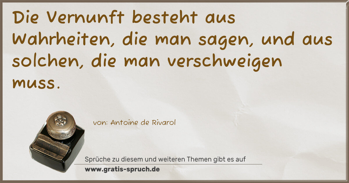 Die Vernunft besteht aus Wahrheiten, die man sagen, und aus solchen, die man verschweigen muss.