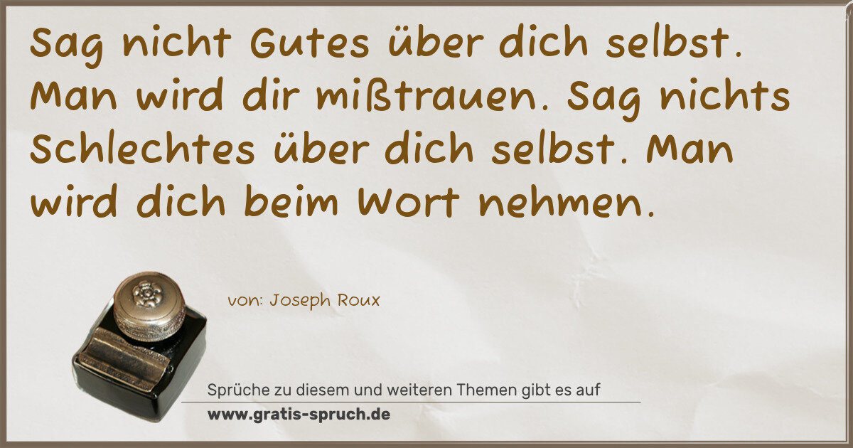 Sag nicht Gutes über dich selbst. Man wird dir mißtrauen. Sag nichts Schlechtes über dich selbst. Man wird dich beim Wort nehmen.