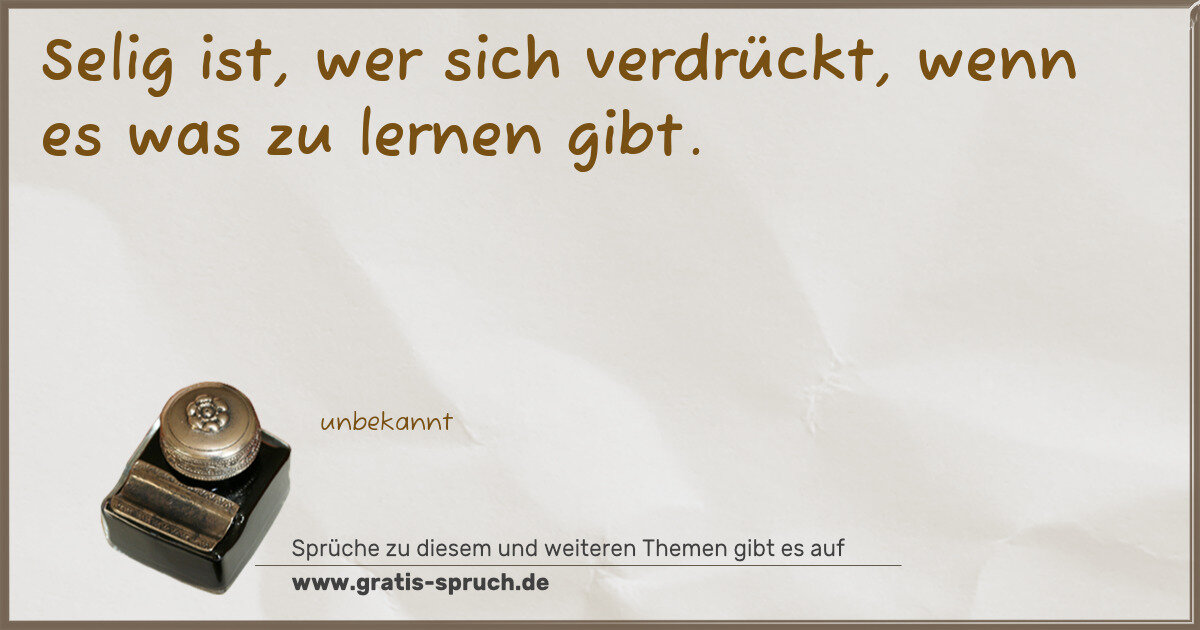 Selig ist, wer sich verdrückt, wenn es was zu lernen gibt.
