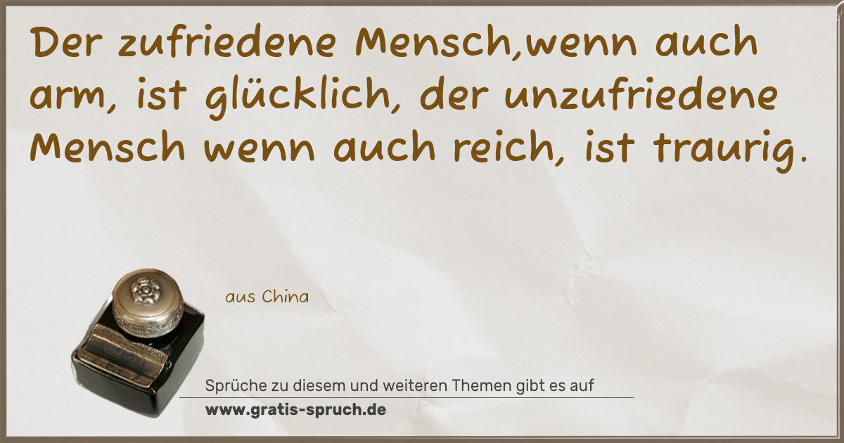 Der zufriedene Mensch,wenn auch arm, ist glücklich, der unzufriedene Mensch wenn auch reich, ist traurig.