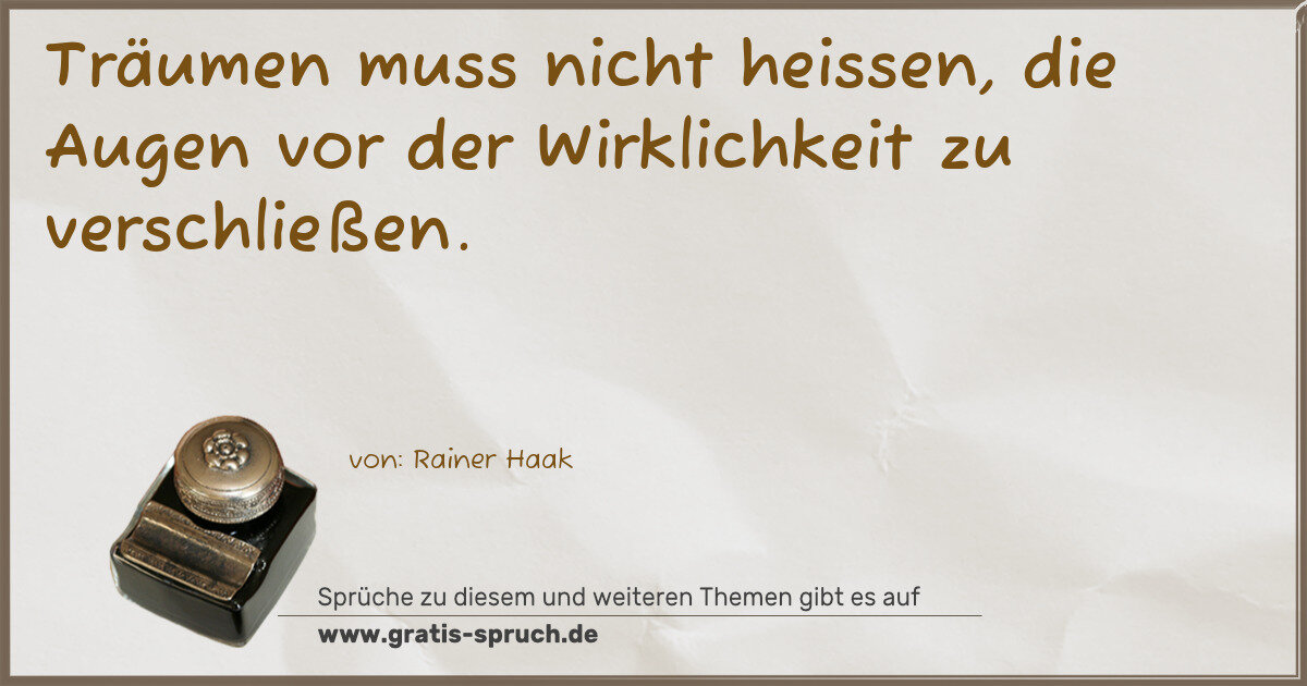 Träumen muss nicht heissen, die Augen vor der Wirklichkeit zu verschließen.