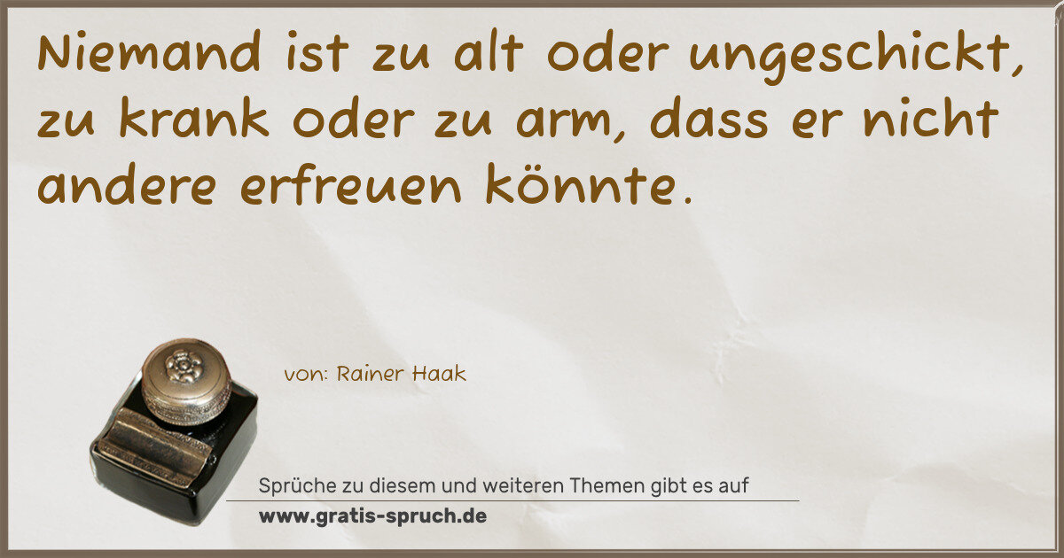 Niemand ist zu alt oder ungeschickt, zu krank oder zu arm, dass er nicht andere erfreuen könnte.