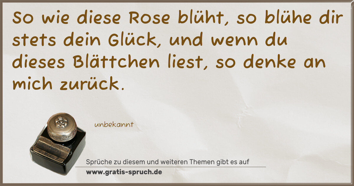 So wie diese Rose blüht, so blühe dir stets dein Glück, und wenn du dieses Blättchen liest, so denke an mich zurück.