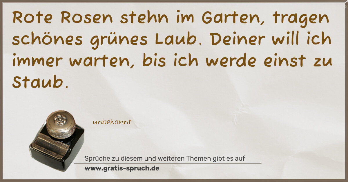 Rote Rosen stehn im Garten, tragen schönes grünes Laub. Deiner will ich immer warten, bis ich werde einst zu Staub.