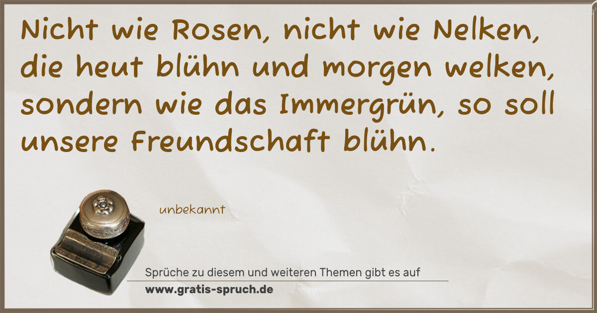 Nicht wie Rosen, nicht wie Nelken, die heut blühn und morgen welken, sondern wie das Immergrün, so soll unsere Freundschaft blühn.
