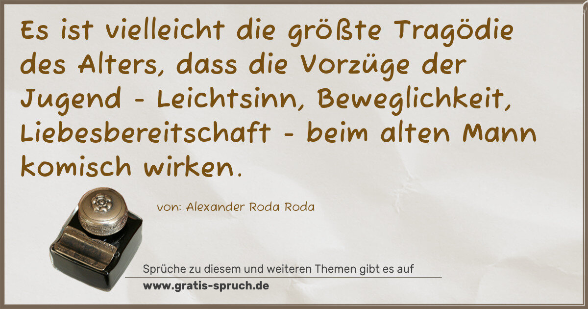 dass die Vorzüge der Jugend - Leichtsinn, Beweglichkeit, Liebesbereitschaft - beim alten Mann komisch wirken.