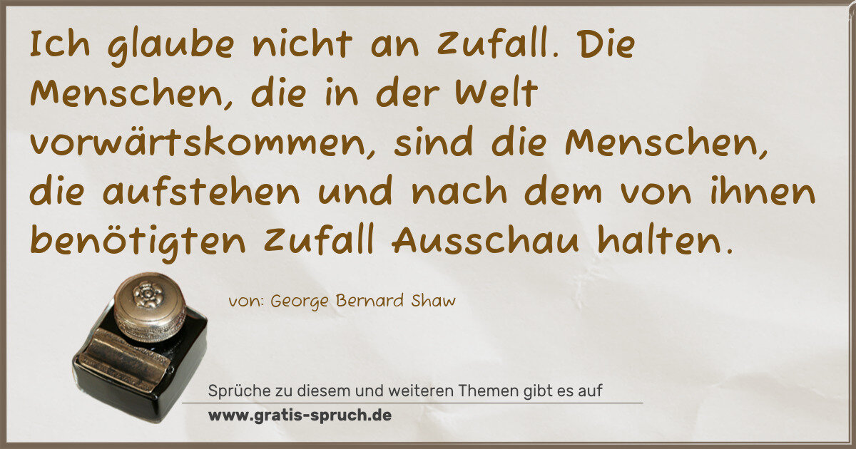 Die Menschen, die in der Welt vorwärtskommen, sind die Menschen, die aufstehen und nach dem von ihnen benötigten Zufall Ausschau halten.