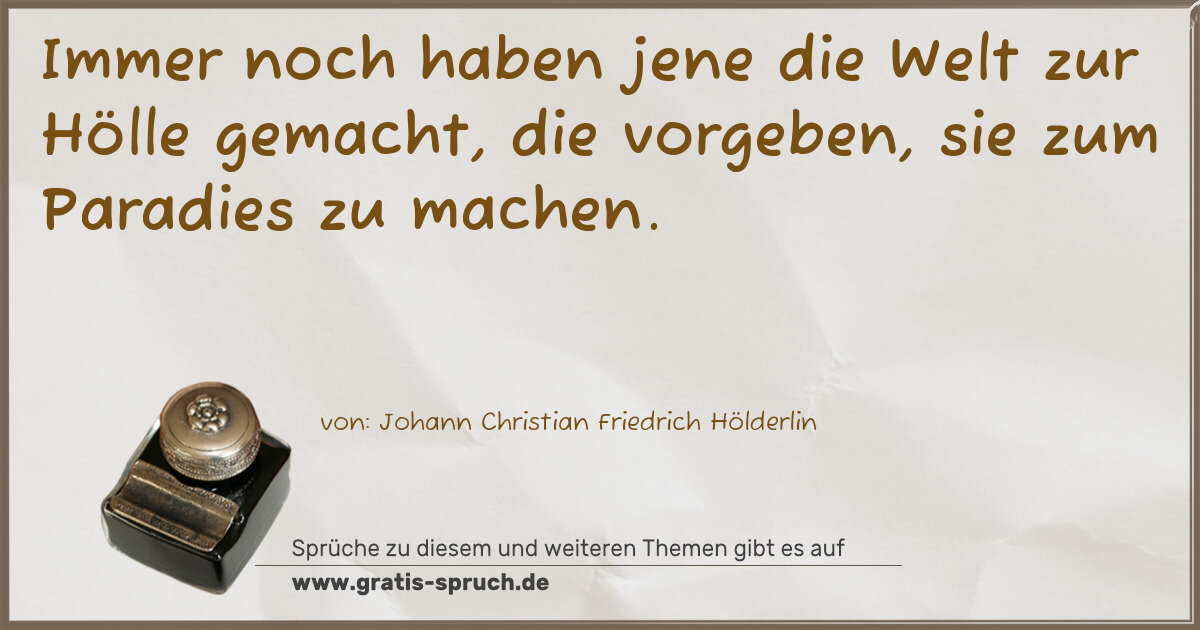 Immer noch haben jene die Welt zur Hölle gemacht, die vorgeben, sie zum Paradies zu machen.