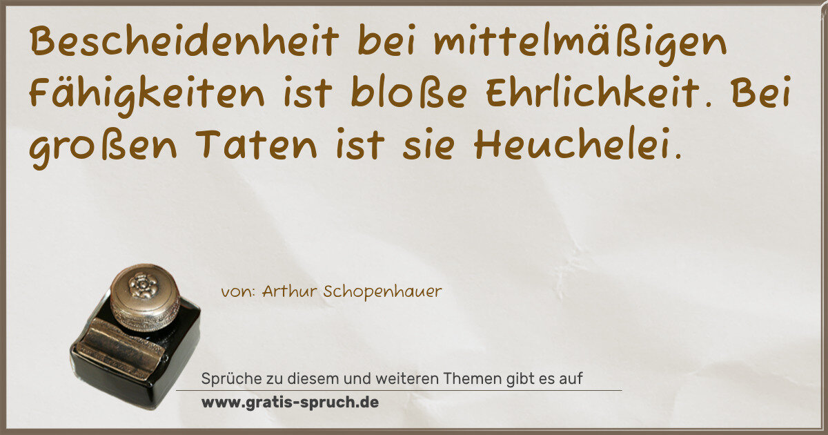 Bescheidenheit bei mittelmäßigen Fähigkeiten ist bloße Ehrlichkeit. Bei großen Taten ist sie Heuchelei.