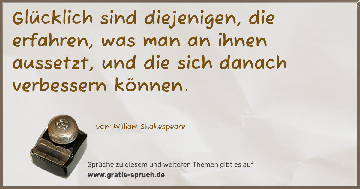 Glücklich sind diejenigen, die erfahren, was man an ihnen aussetzt, und die sich danach verbessern können.
