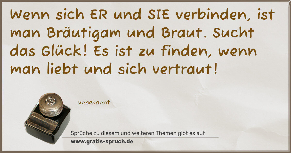 Wenn sich ER und SIE verbinden, ist man Bräutigam und Braut. Sucht das Glück! Es ist zu finden, wenn man liebt und sich vertraut!