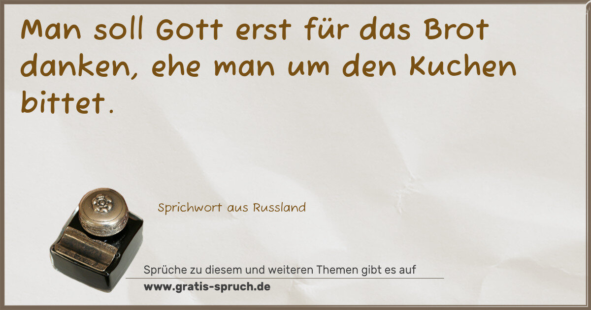 Man soll Gott erst für das Brot danken, ehe man um den Kuchen bittet.