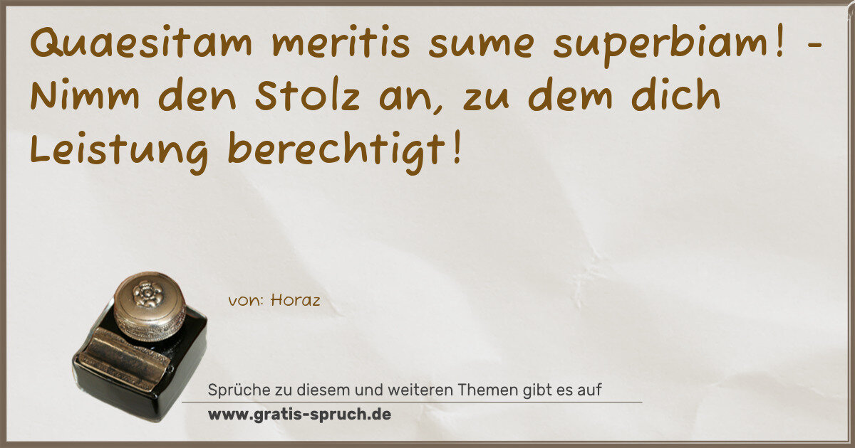 Quaesitam meritis sume superbiam! - Nimm den Stolz an, zu dem dich Leistung berechtigt!