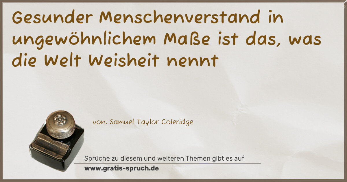 Gesunder Menschenverstand in ungewöhnlichem Maße ist das, was die Welt Weisheit nennt