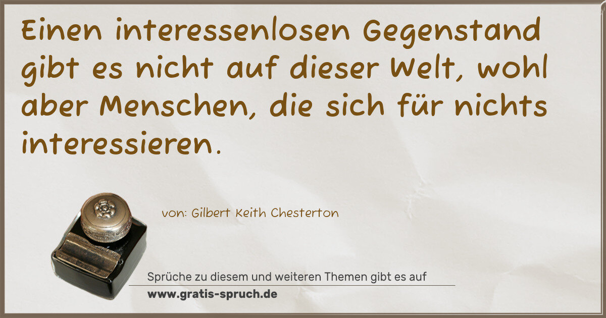 Einen interessenlosen Gegenstand gibt es nicht auf dieser Welt, wohl aber Menschen, die sich für nichts interessieren.