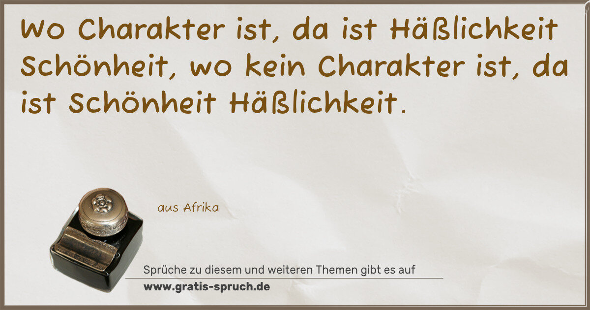Wo Charakter ist, da ist Häßlichkeit Schönheit, wo kein Charakter ist, da ist Schönheit Häßlichkeit.