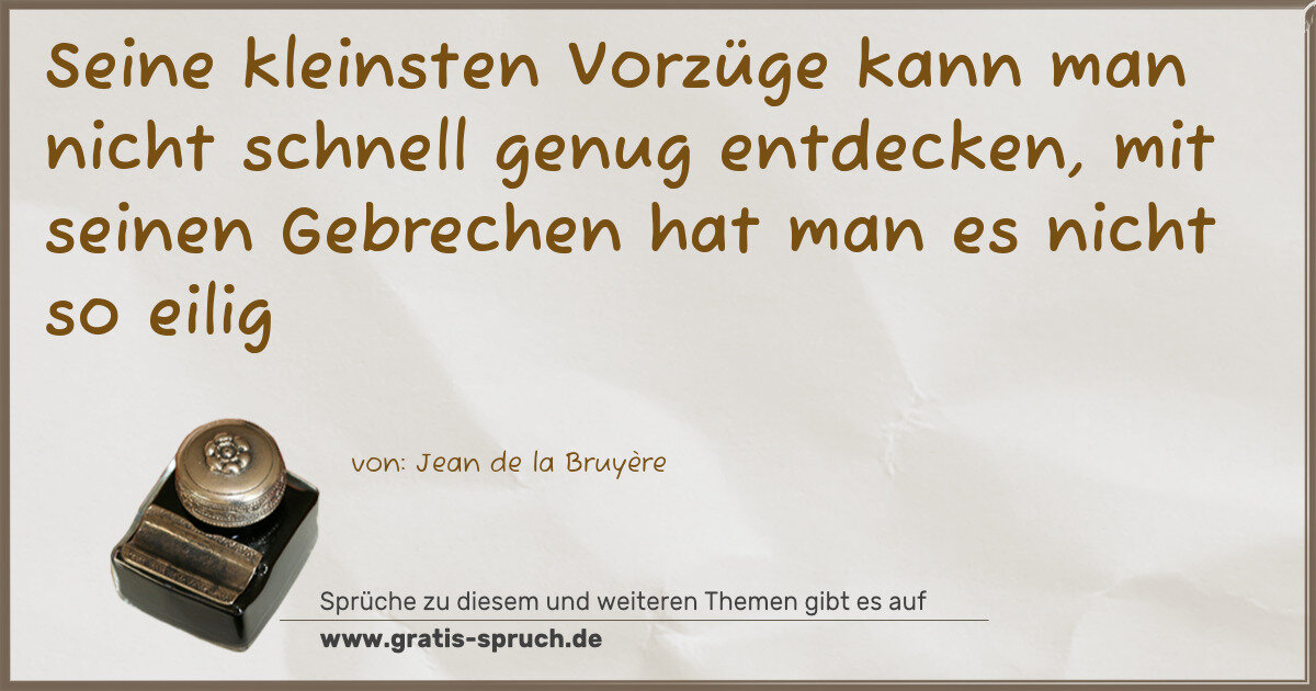 Seine kleinsten Vorzüge kann man nicht schnell genug entdecken, mit seinen Gebrechen hat man es nicht so eilig