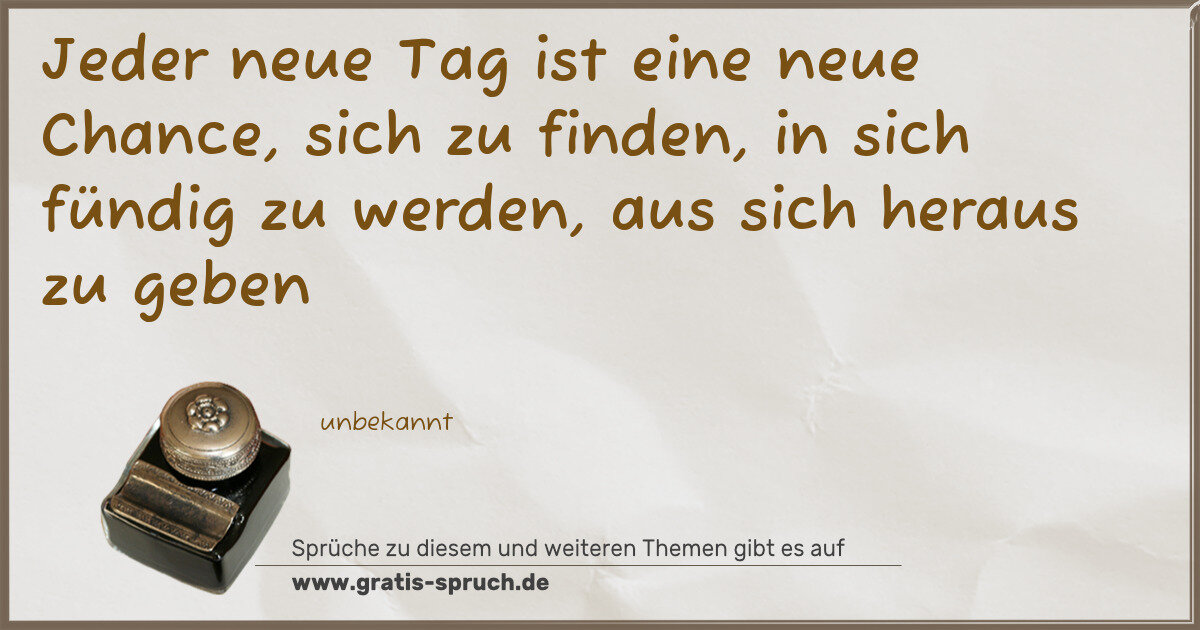 Jeder neue Tag ist eine neue Chance, sich zu finden, in sich fündig zu werden, aus sich heraus zu geben