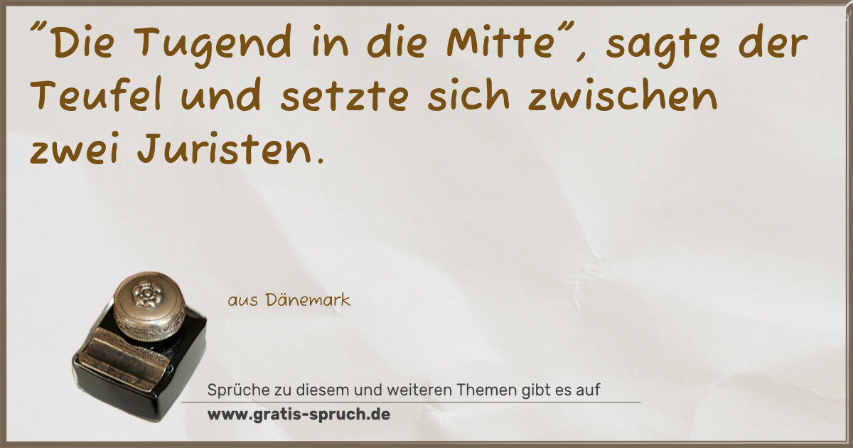 "Die Tugend in die Mitte", sagte der Teufel und setzte sich zwischen zwei Juristen.