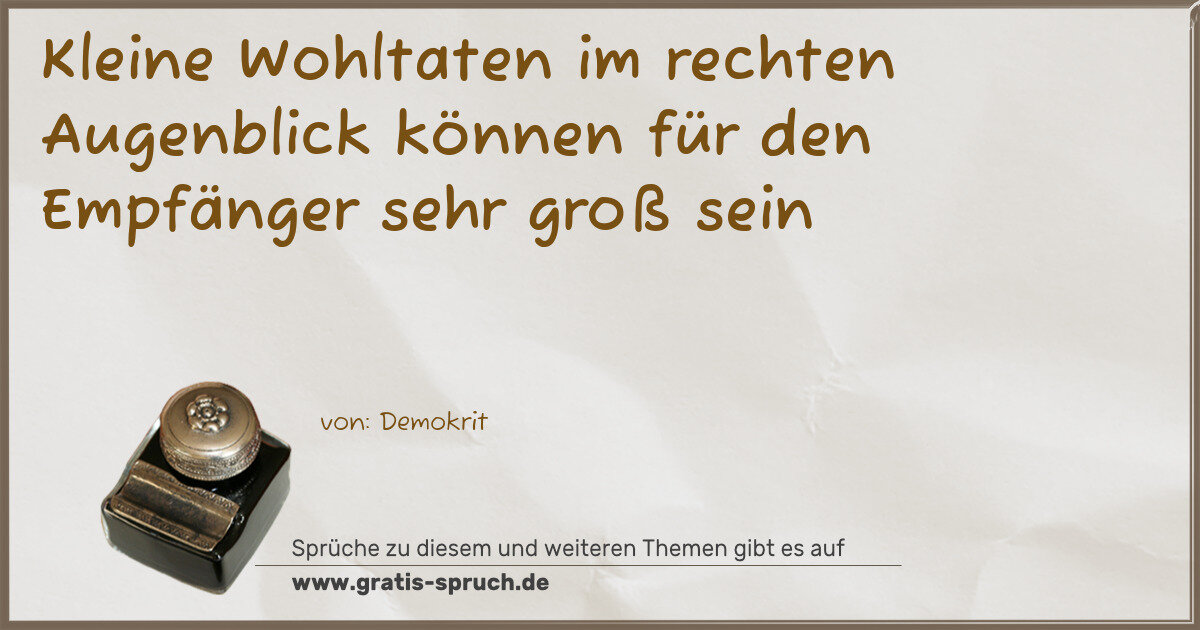 Kleine Wohltaten im rechten Augenblick können für den Empfänger sehr groß sein