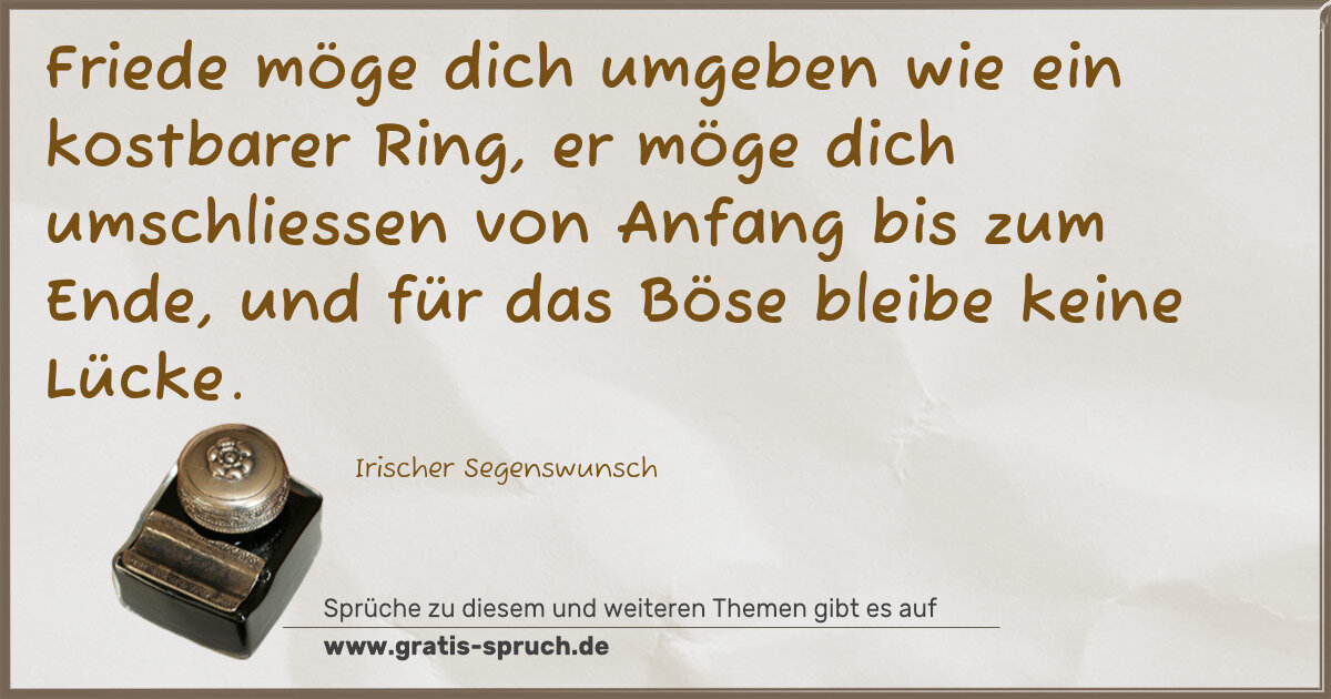 Friede möge dich umgeben wie ein kostbarer Ring, er möge dich umschliessen von Anfang bis zum Ende, und für das Böse bleibe keine Lücke.