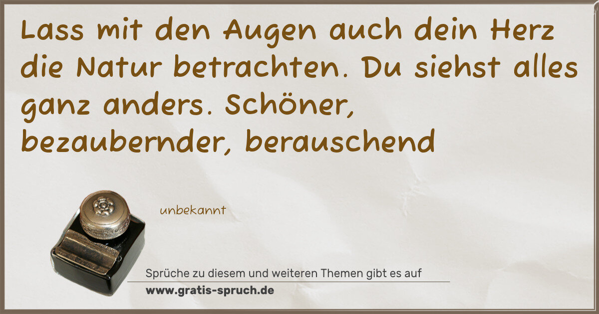 Lass mit den Augen auch dein Herz die Natur betrachten. Du siehst alles ganz anders. Schöner, bezaubernder, berauschend