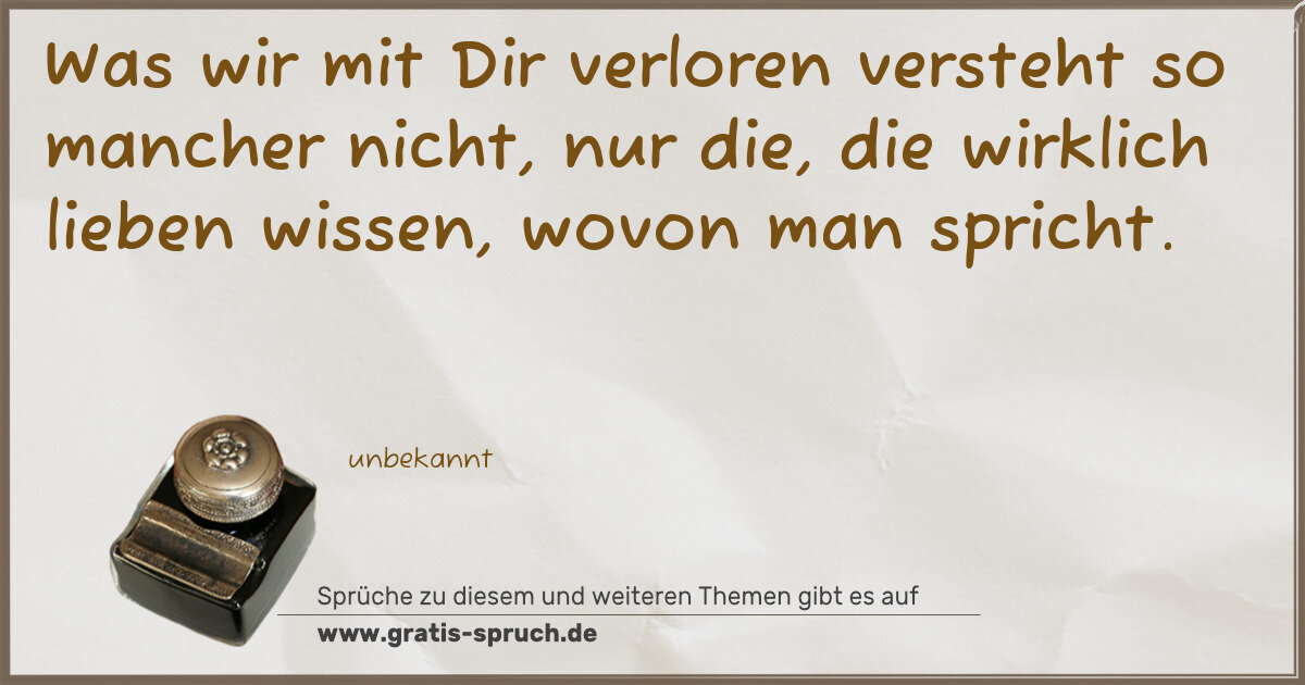 Was wir mit Dir verloren versteht so mancher nicht, nur die, die wirklich lieben wissen, wovon man spricht.