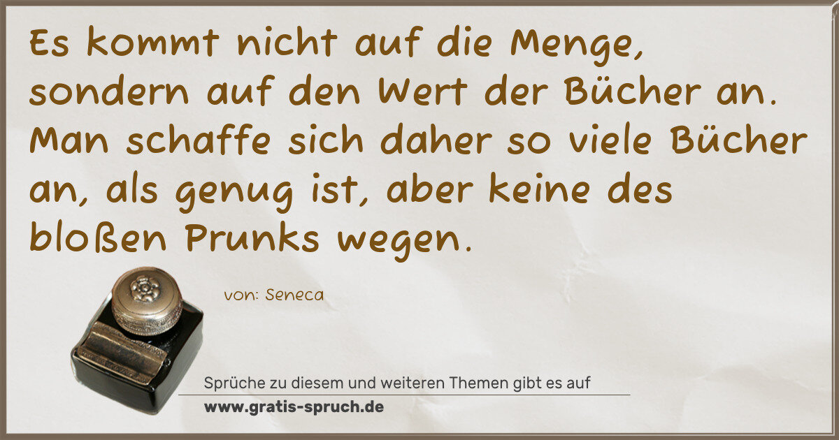 »Es kommt nicht auf die Menge, sondern auf den Wert der Bücher an. Man schaffe sich daher so viele Bücher an, als genug ist, aber keine des bloßen Prunks wegen.