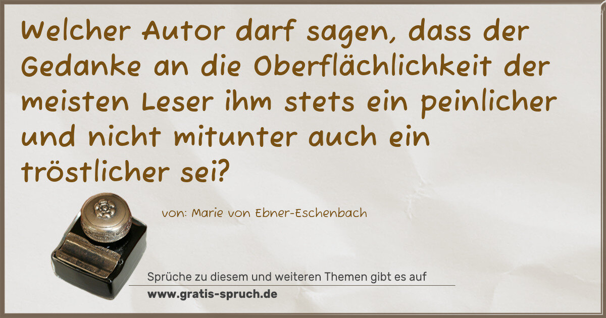 dass der Gedanke an die Oberflächlichkeit der meisten Leser ihm stets ein peinlicher und nicht mitunter auch ein tröstlicher sei?