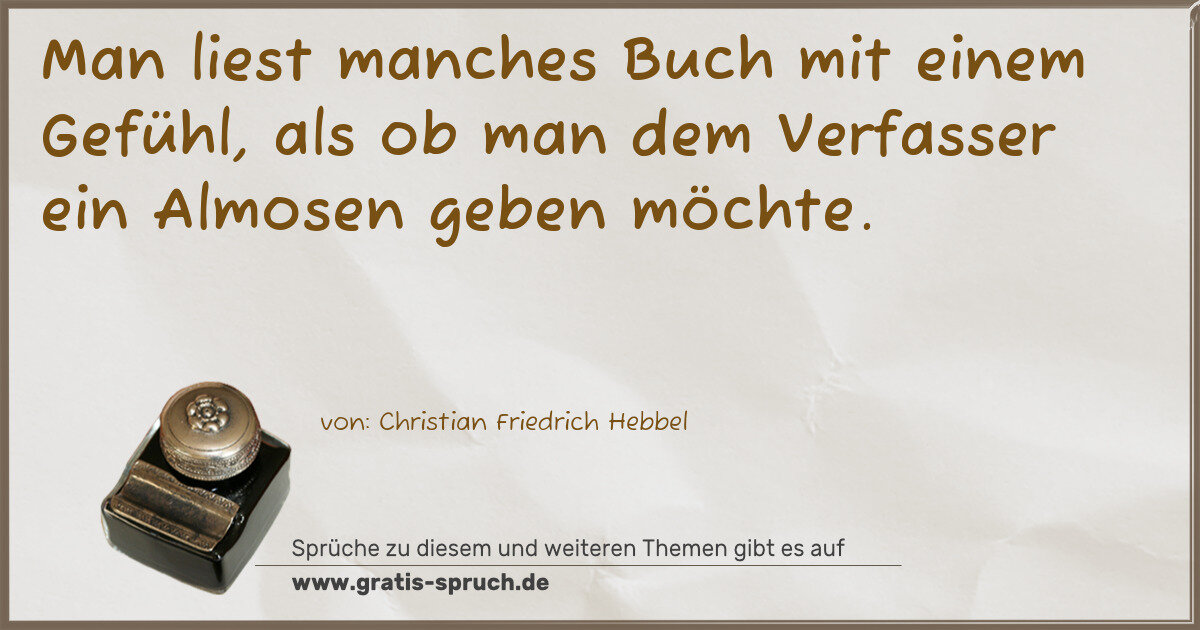 Man liest manches Buch mit einem Gefühl, als ob man dem Verfasser ein Almosen geben möchte.