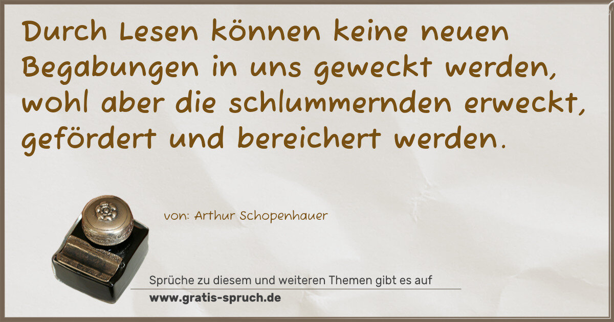 »Durch Lesen können keine neuen Begabungen in uns geweckt werden, wohl aber die schlummernden erweckt, gefördert und bereichert werden.