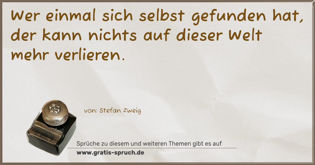 Wer einmal sich selbst gefunden hat, der kann nichts auf dieser Welt mehr verlieren.
