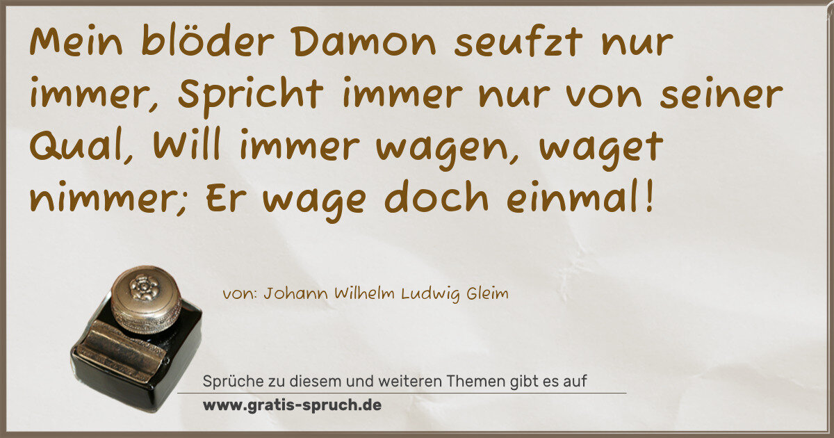 Mein blöder Damon seufzt nur immer, Spricht immer nur von seiner Qual, Will immer wagen, waget nimmer; Er wage doch einmal!