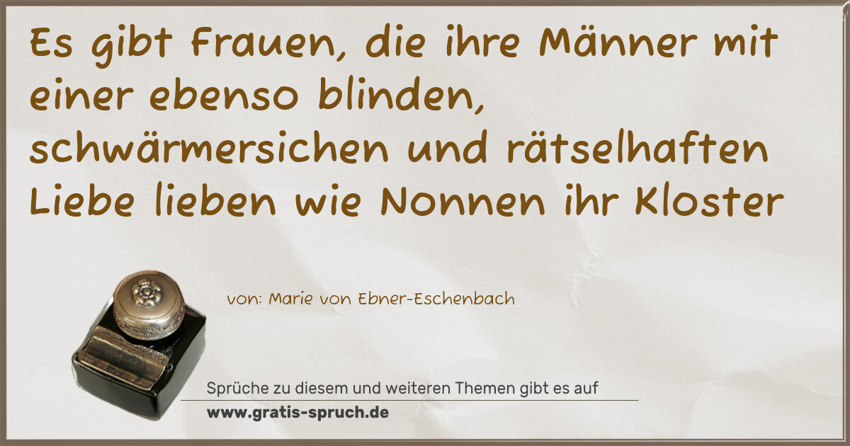 »Es gibt Frauen, die ihre Männer mit einer ebenso blinden, schwärmersichen und rätselhaften Liebe lieben wie Nonnen ihr Kloster