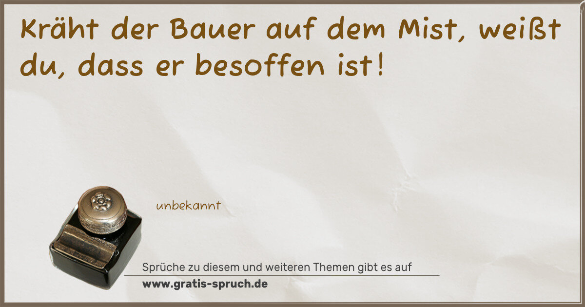 Kräht der Bauer auf dem Mist, weißt du, dass er besoffen ist!