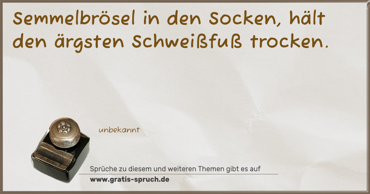 Semmelbrösel in den Socken, hält den ärgsten Schweißfuß trocken.