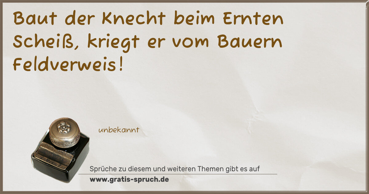 Baut der Knecht beim Ernten Scheiß, kriegt er vom Bauern Feldverweis!