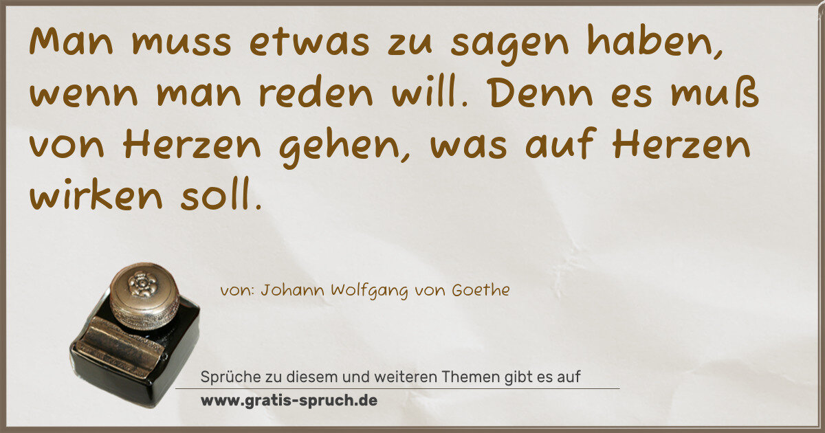 Man muss etwas zu sagen haben, wenn man reden will. Denn es muß von Herzen gehen, was auf Herzen wirken soll.