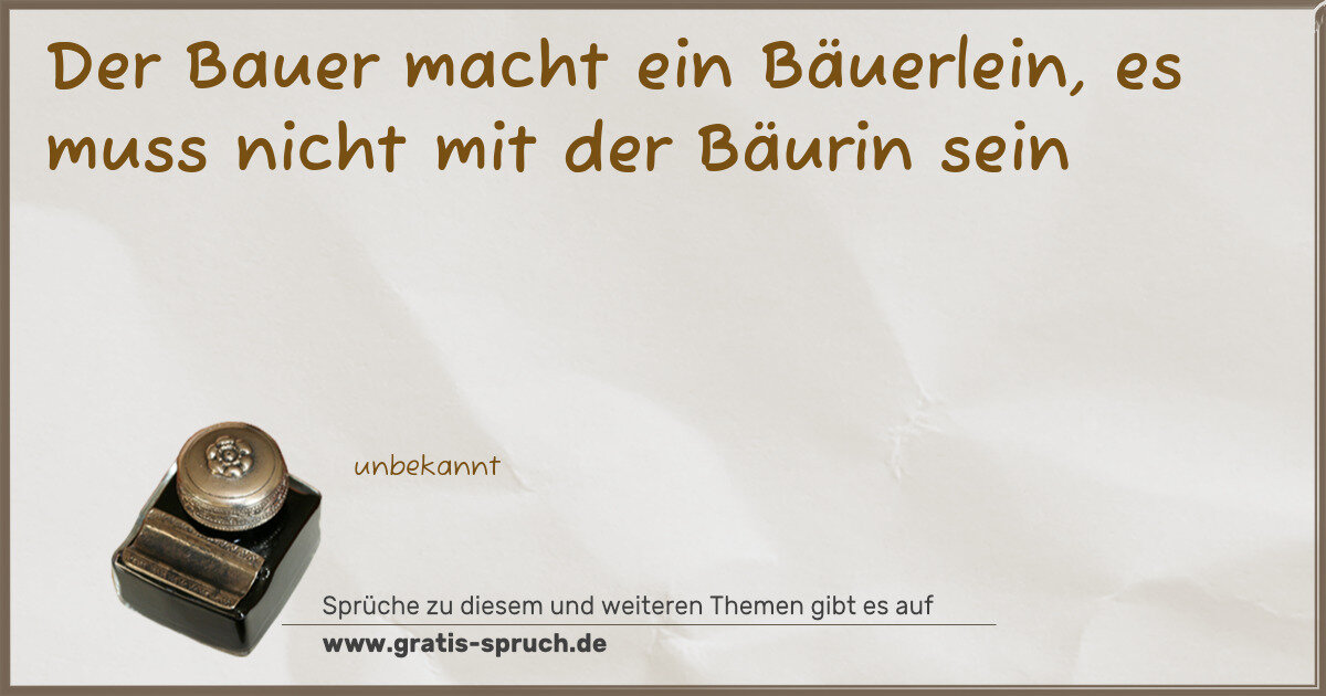 Der Bauer macht ein Bäuerlein, es muss nicht mit der Bäurin sein
