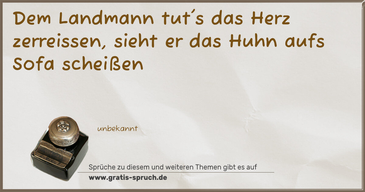 Dem Landmann tut's das Herz zerreissen, sieht er das Huhn aufs Sofa scheißen