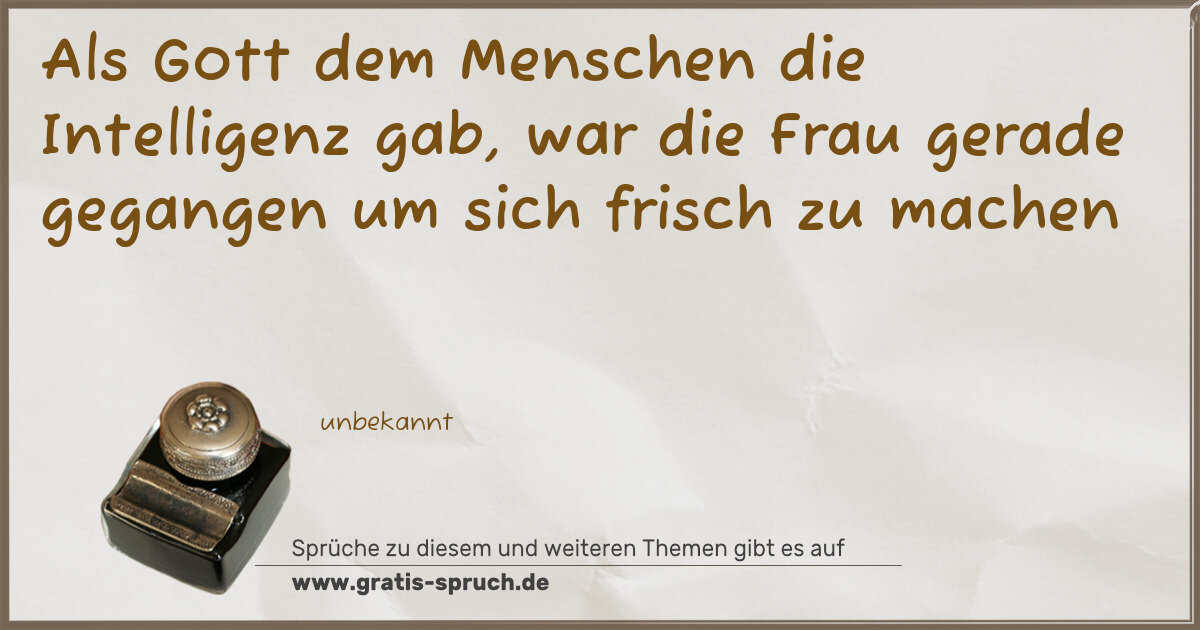 Als Gott dem Menschen die Intelligenz gab, war die Frau gerade gegangen um sich frisch zu machen