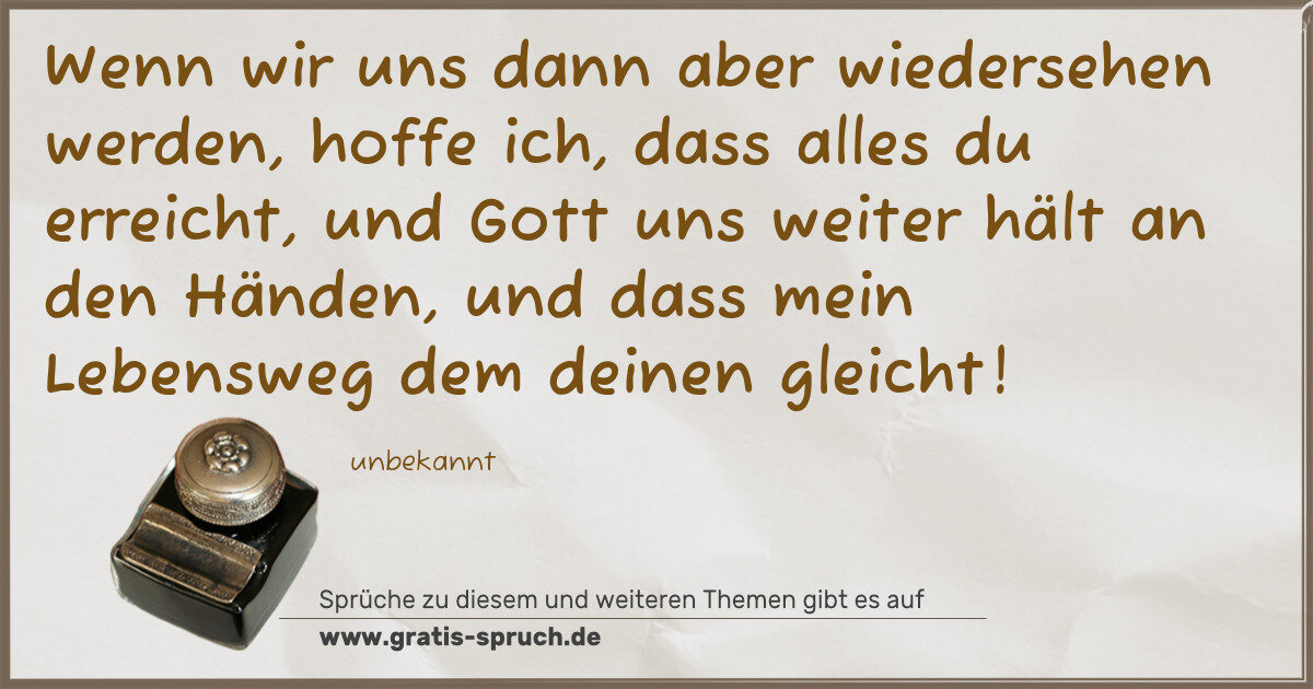 Wenn wir uns dann aber wiedersehen werden, hoffe ich, dass alles du erreicht, und Gott uns weiter hält an den Händen, und dass mein Lebensweg dem deinen gleicht!