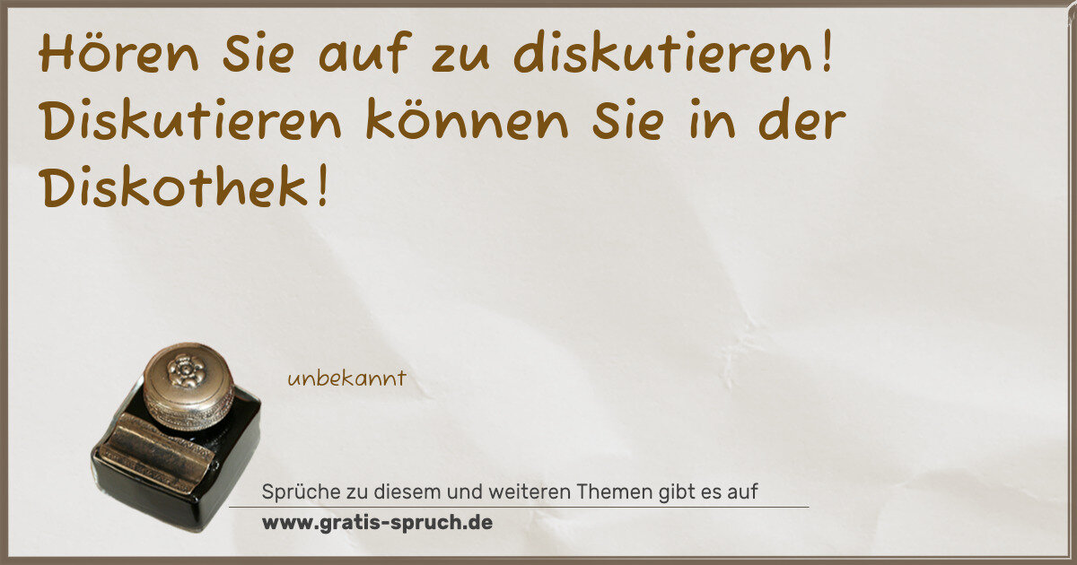 Hören Sie auf zu diskutieren! Diskutieren können Sie in der Diskothek!