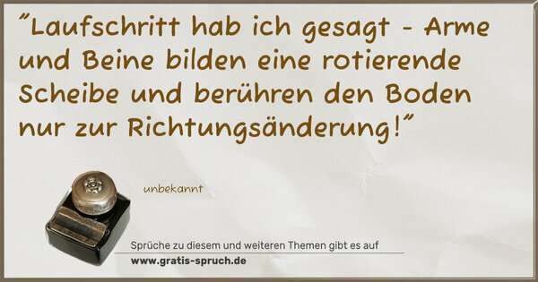 "Laufschritt hab ich gesagt - Arme und Beine bilden eine rotierende Scheibe und berühren den Boden nur zur Richtungsänderung!"