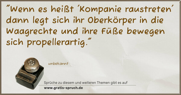 "Wenn es heißt 'Kompanie raustreten' dann legt sich ihr Oberkörper in die Waagrechte und ihre Füße bewegen sich propellerartig."